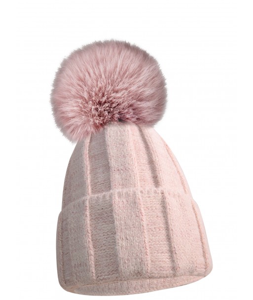 Apolline women's fleece-lined hat with rabbit pom-pom, striped hat, warm, simple La Vitta