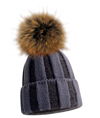 Apolline damska czapka z naturalnym pomponem podszyta polarem, czapka w paski, ciepła, prosta La Vitta